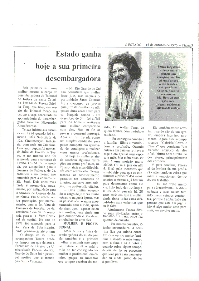 1975 Thereza Tang foi nomeada desembargadora do Tribunal de Justiça, não mais