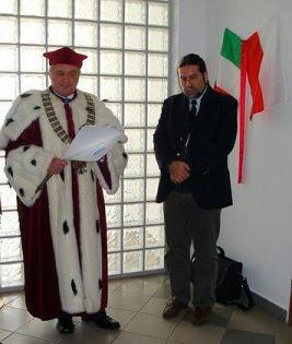 honorarios, fue presidida por el Rector Tadeusz Graca, acompañado por catedráticos y directores de